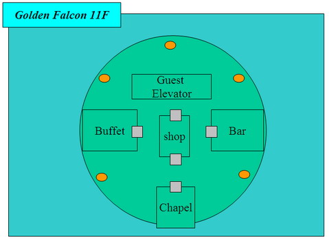 ชั้นนี้ต่างจากชั้นอื่นตรงที่มีลักษณะกลมเหมือนยอดหอคอย ผนังรอบด้านเป็นกระจก แต่ไม่มีหน้าต่างนอกจากช่อง
